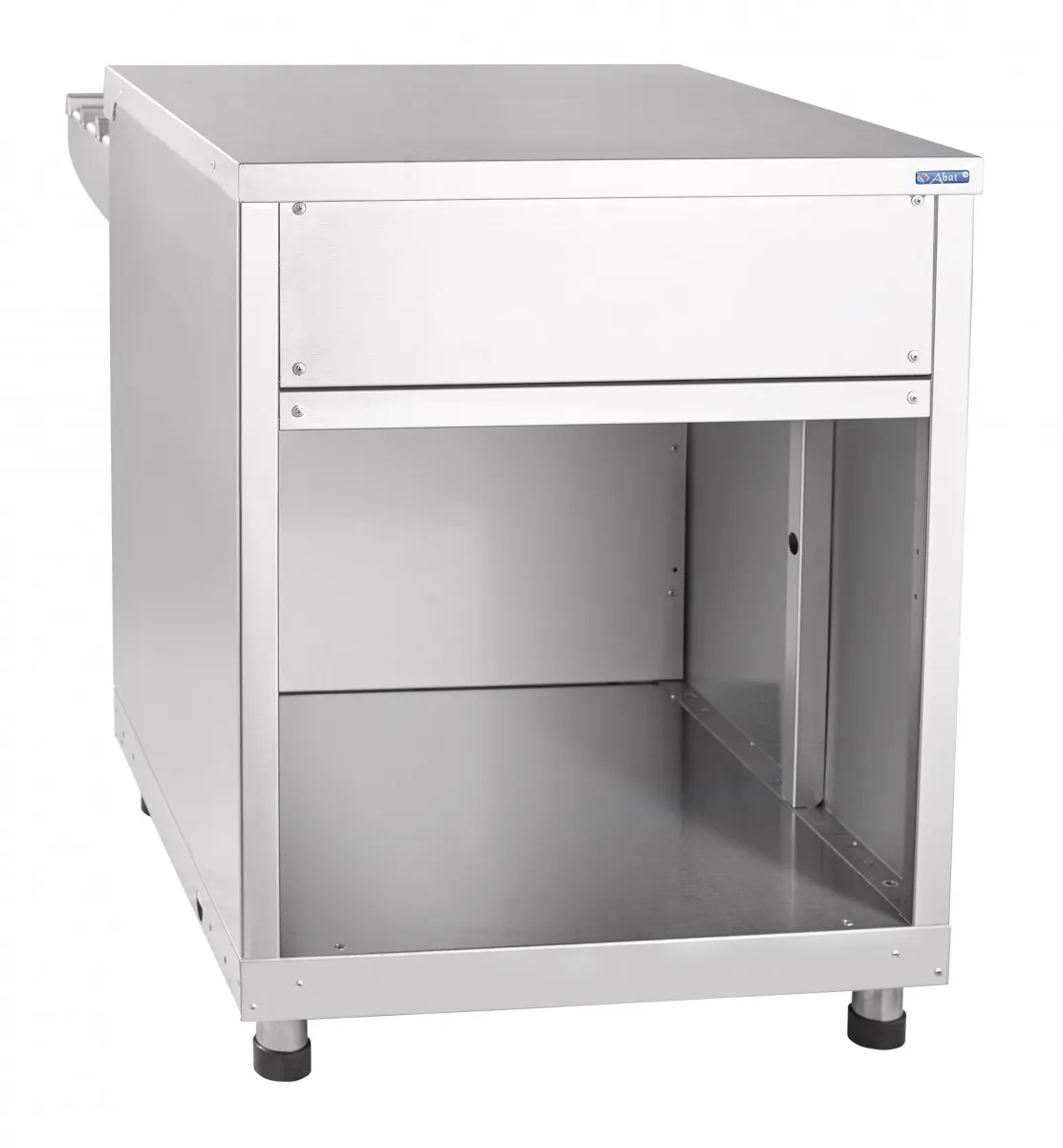 Используется в качестве нейтрального элемента линии раздачи и предназначен для кратковременного хранения и раздачи потребителю хлебобулочных и кондитерских изделий, а также для установки на его столе термостата с напитками. Внизу - открытый шкаф для хранения кухонного инвентаря. С направляющими.