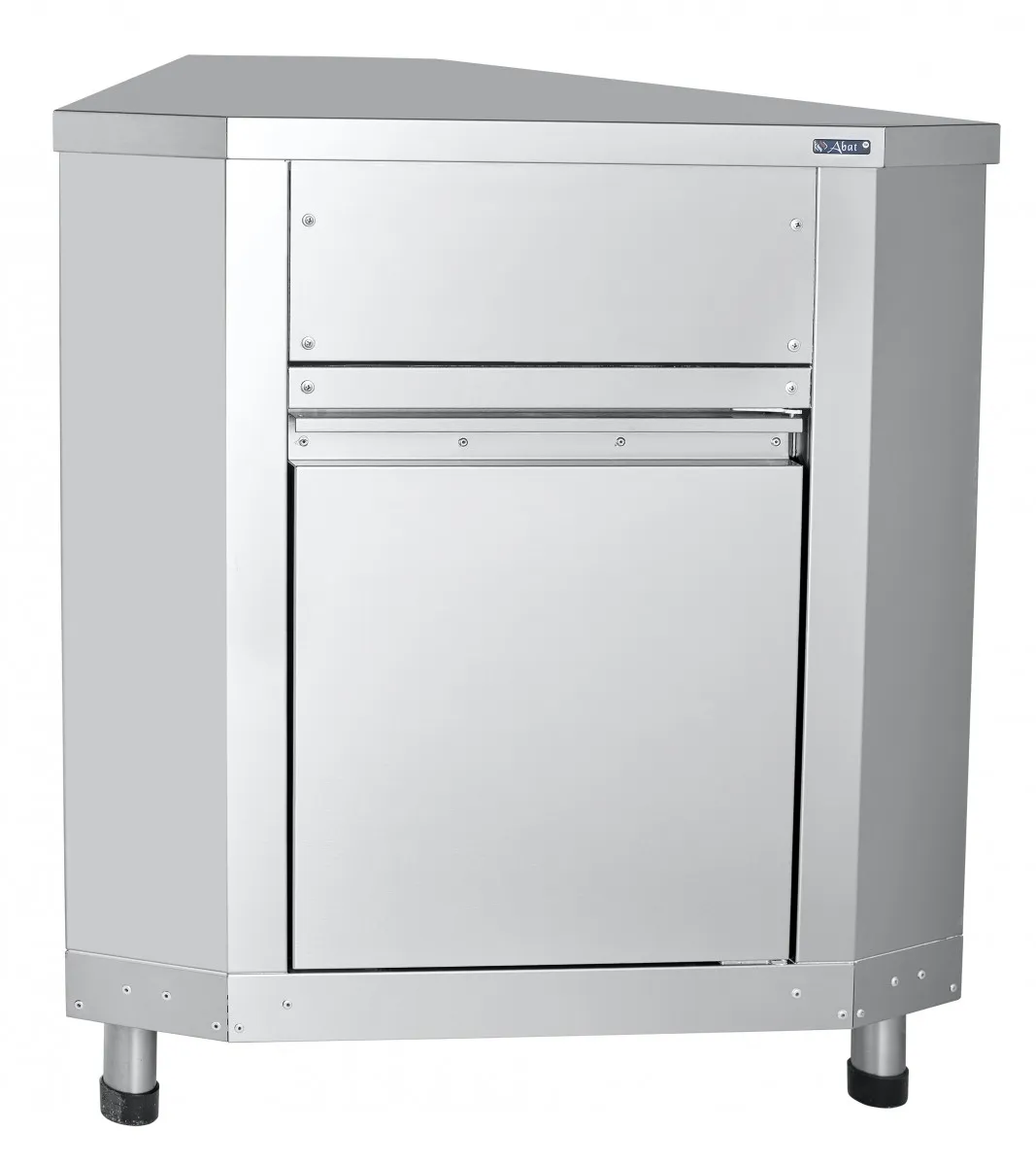 Модуль поворотный внутренний служит в качестве нейтрального стола, одновременно позволяя поворачивать технологические линии раздачи под углом 45 градусов, не разрывая линию направляющих для подносов.