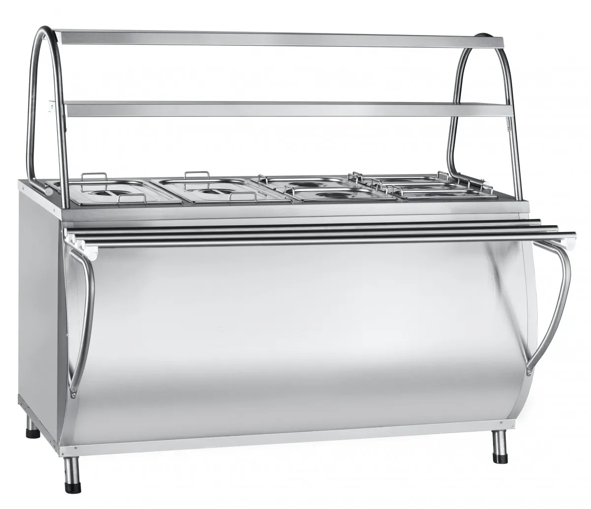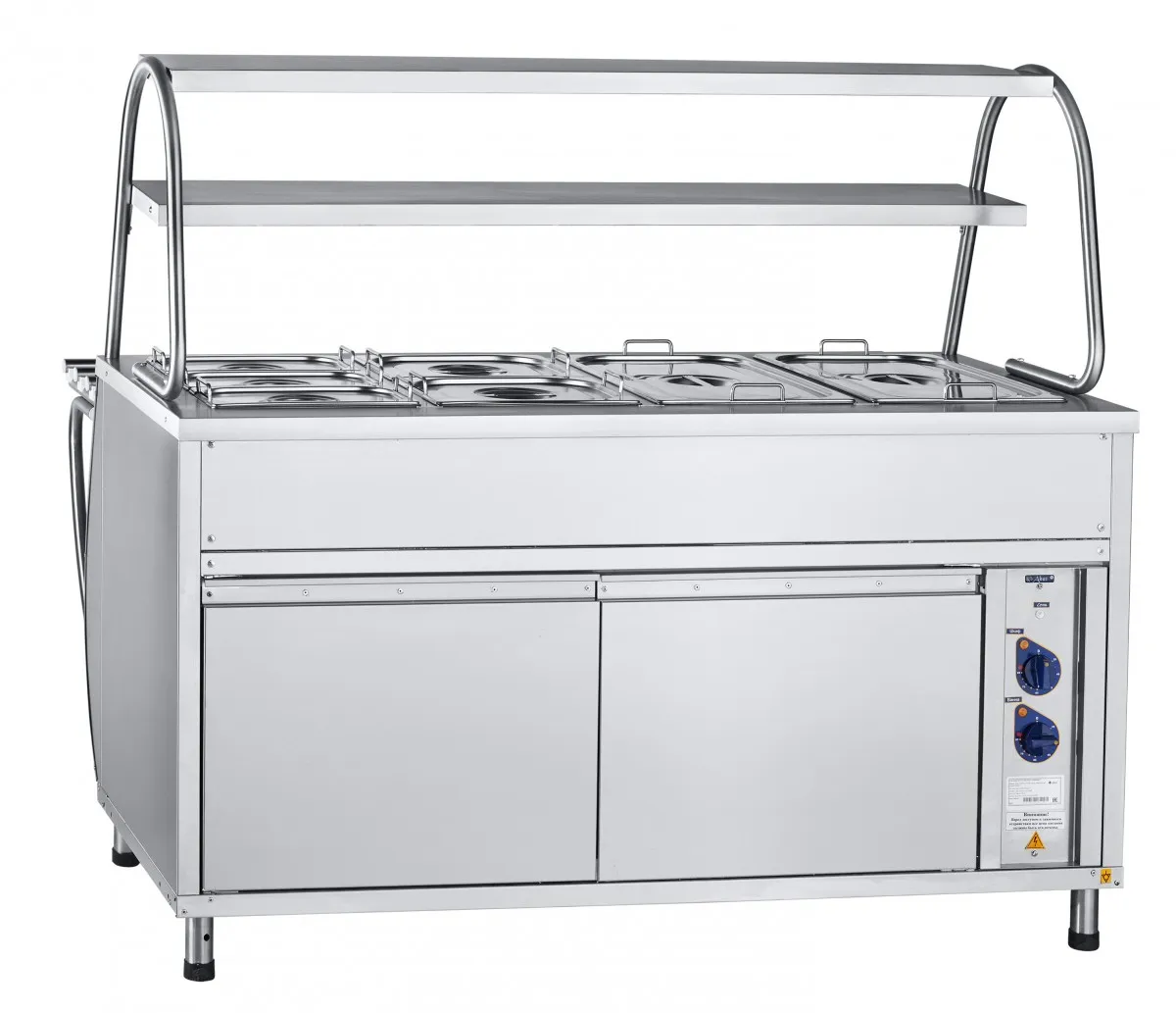 Двойная полка над мармитом обеспечивает большую полезную площадь для выкладки блюд и имеет лампу подсветки.