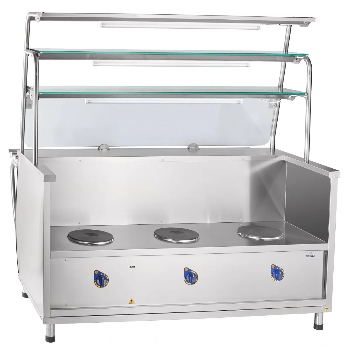 Каждый из трех ярусов полки над мармитом оснащен лампой подсветки.