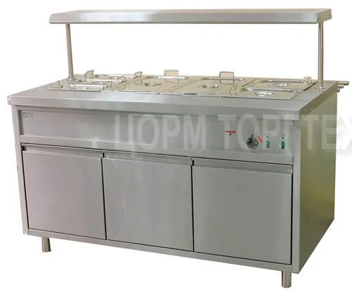 Под ванной мармита расположен технологический отсек (объём 460дм3, площадь пола – 1м2,для хранения инвентаря и т.п.), закрываемый 3-я дверками.