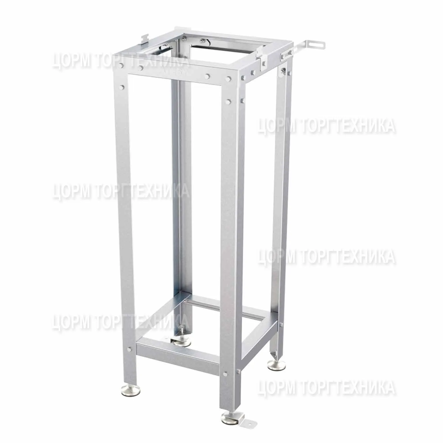 Стойки каркаса представляют собой уголок с фальцованными краями для увеличения жесткости конструкции и исключения травмоопасности. Опорные ножки регулируются по высоте в пределах 20 мм и изготовлены из нержавеющей стали с пластиковой подложкой снизу для предотвращения повреждения пола.